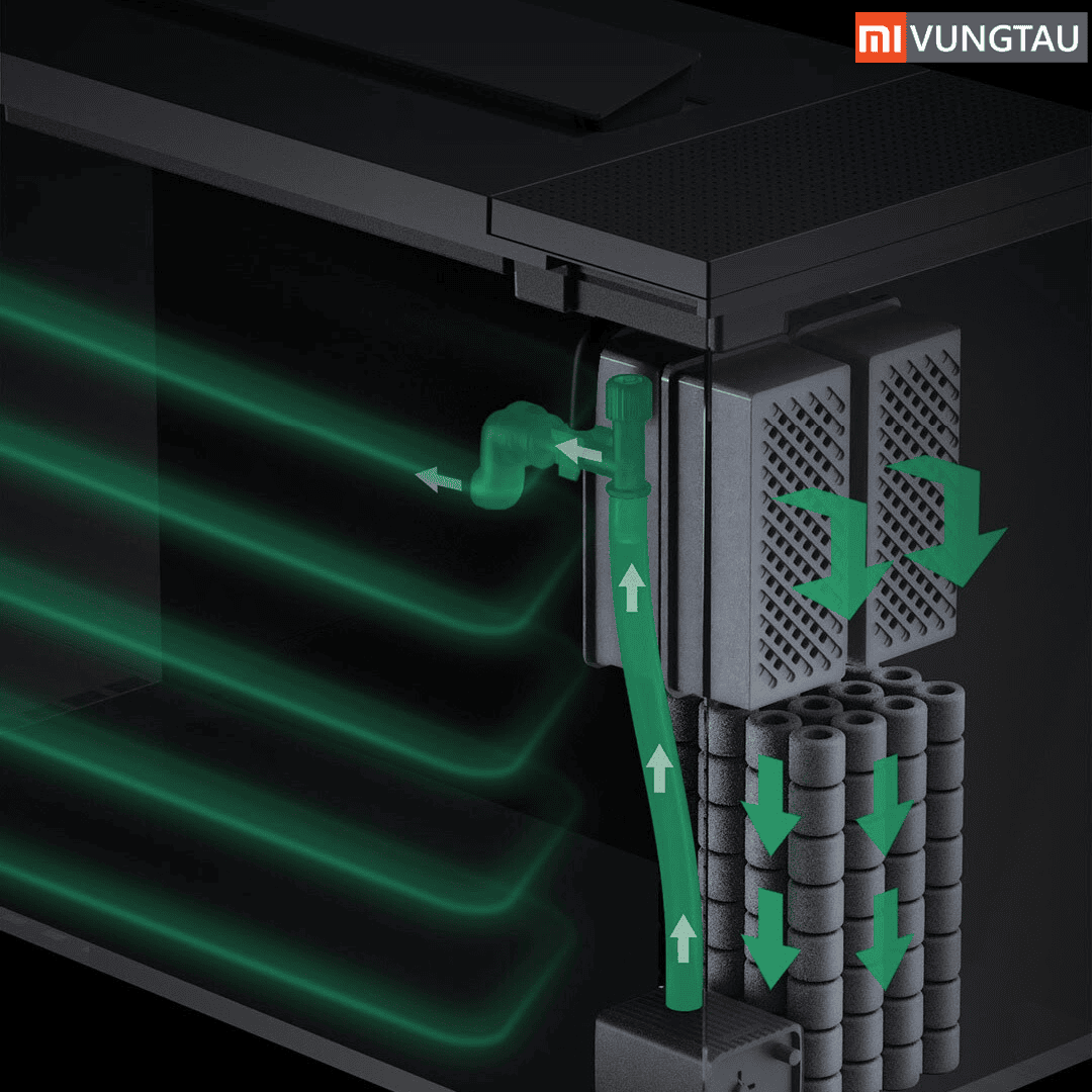 Đối với nuôi cá, chất lượng nước là vô cùng quan trọng. Hồ thủy sinh mini PETKIT sử dụng hệ thống lọc nước 4 lớp mạnh mẽ, giúp giảm tối đa tần suất thay nước, nâng cao chất lượng nước cho sự phát triển ổn định của cá và hệ thống thủy sinh bên trong. Cụ thể, 4 lớp lọc trong bể gồm bông xốp giúp lọc các hạt, tạp chất nhỏ mịn. Bông tổ ong giúp chặn các tạp chất lớn. Than hoạt tính giúp hấp thụ nanopore cải thiện chất lượng nước. Và cuối cùng là bông sinh học zeolite giúp hấp thụ nitơ amoniac, nuôi cấy sinh hóa. Buồng lọc cũng được thiết kế lớn hơn, chiếm 15% thể tích nước tuần hoàn và lọc 12 lần/giờ, cải thiện chất lượng nước trong bể liên tục.