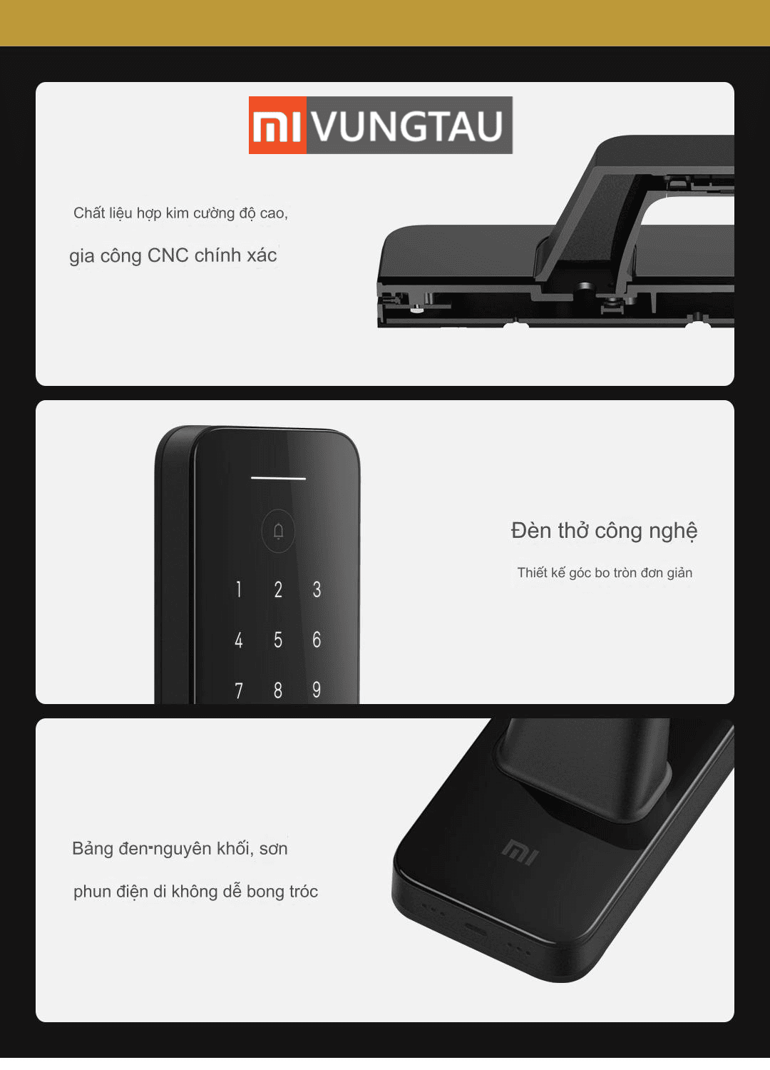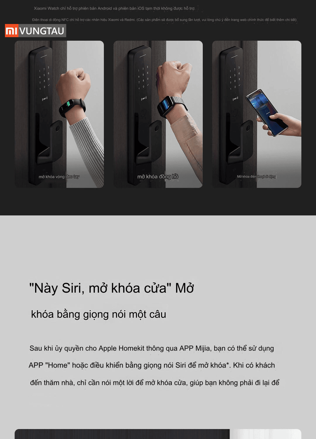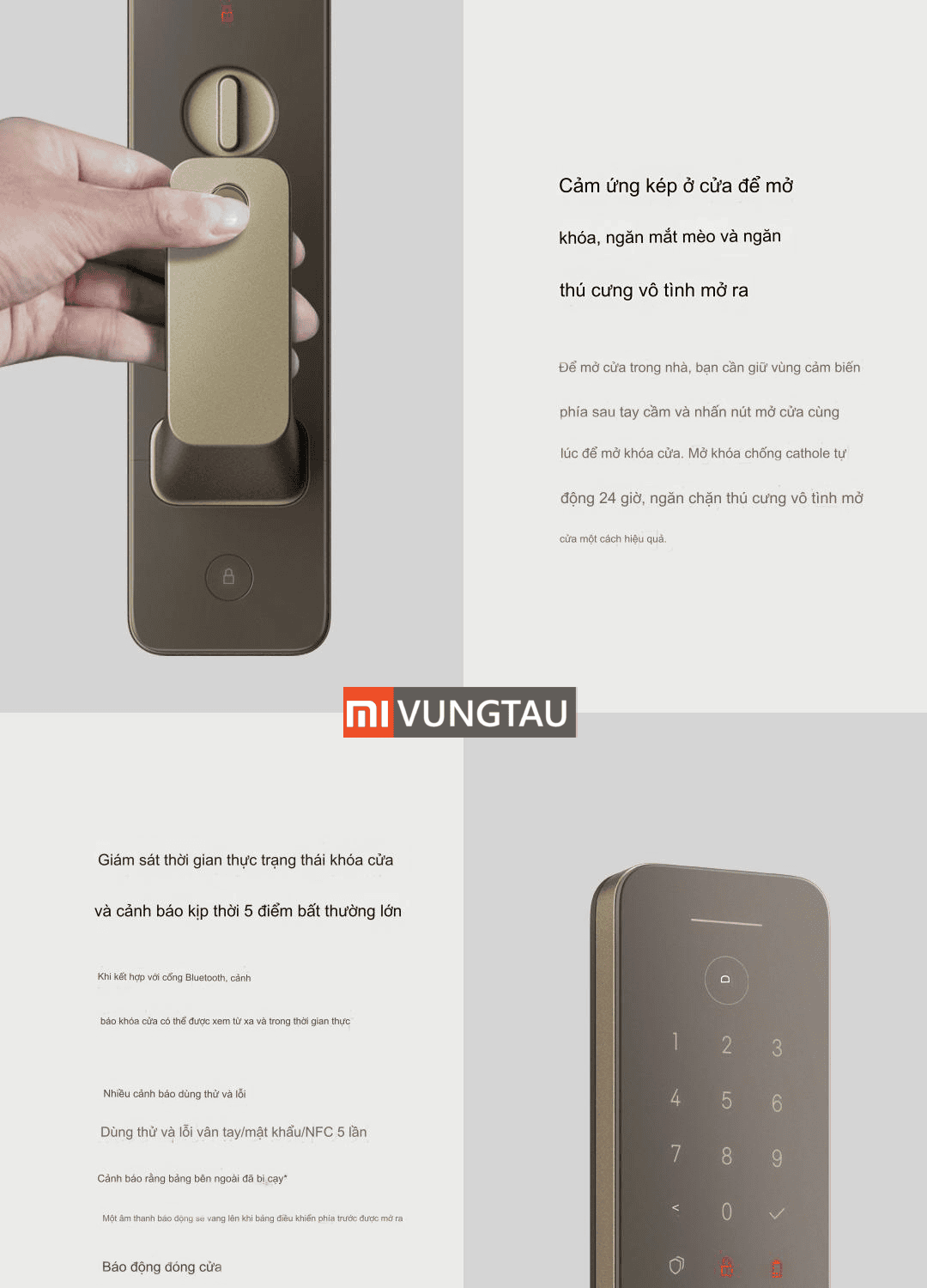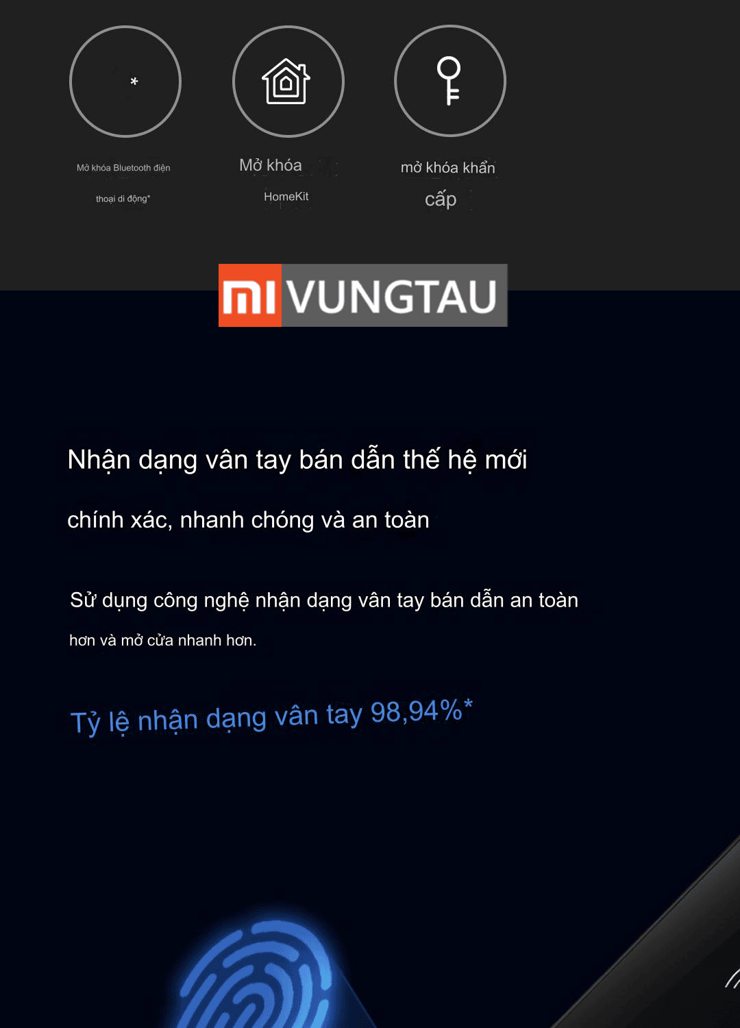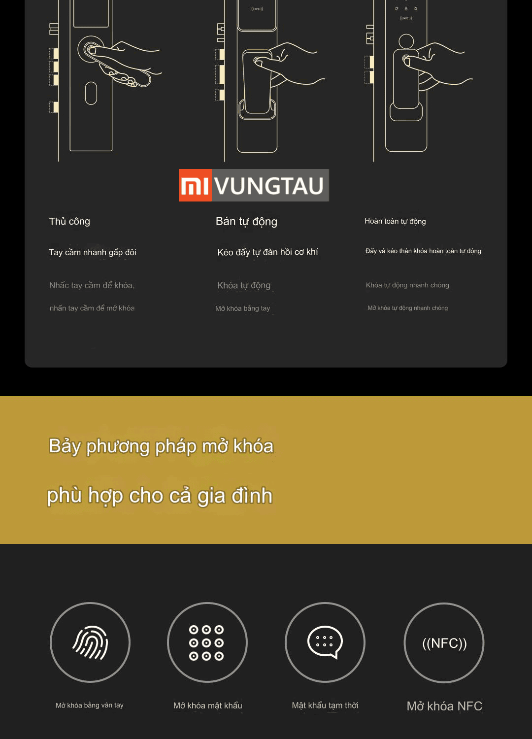 | Cách Mở Khóa | Vân tay, Điện thoại, NFC, Bluetooth, Chìa khoá, Mật khẩu |