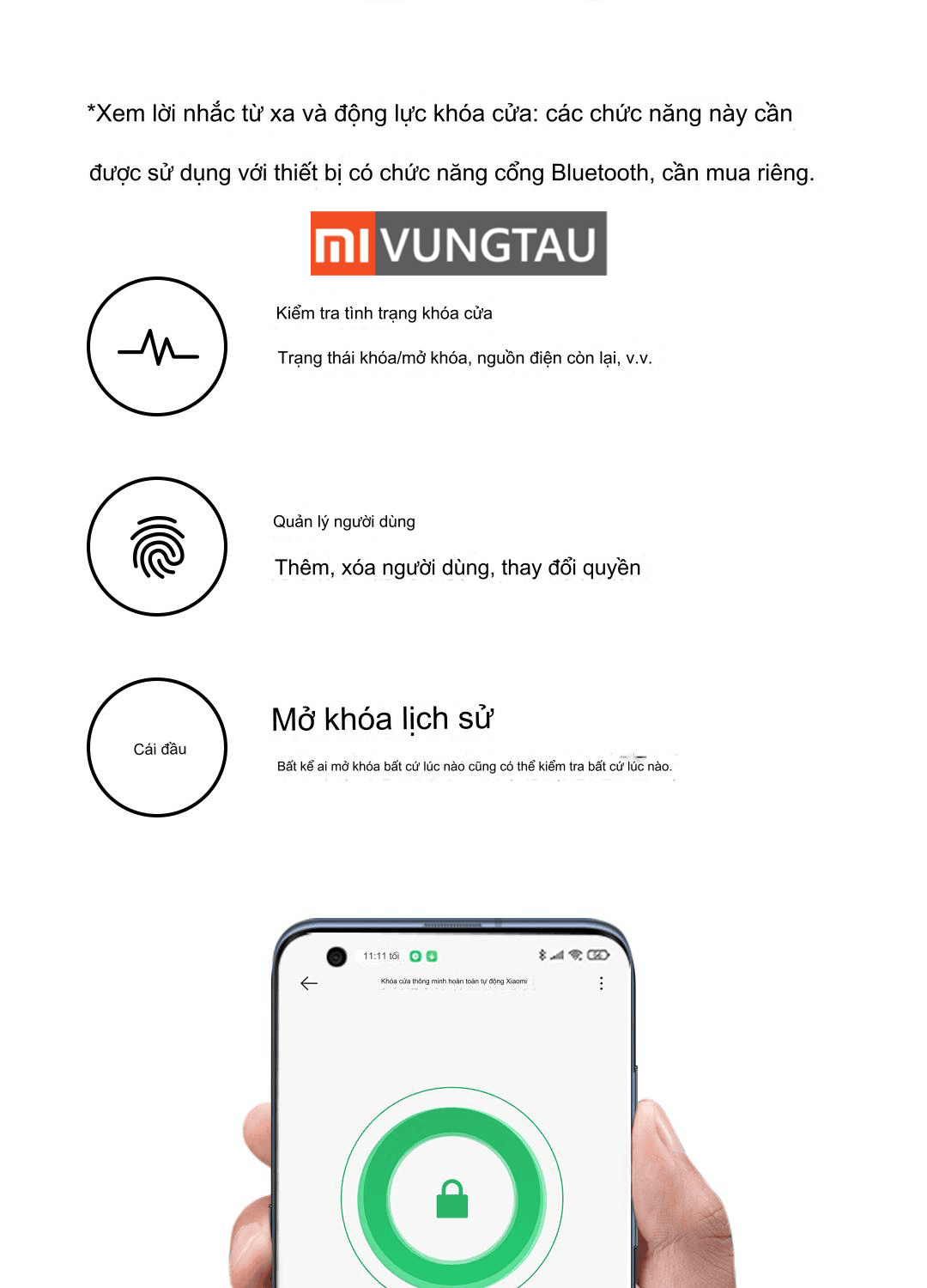- Mở khóa qua Bluetooth: Đơn giản, dễ dàng, hiệu quả, nhanh chóng.
