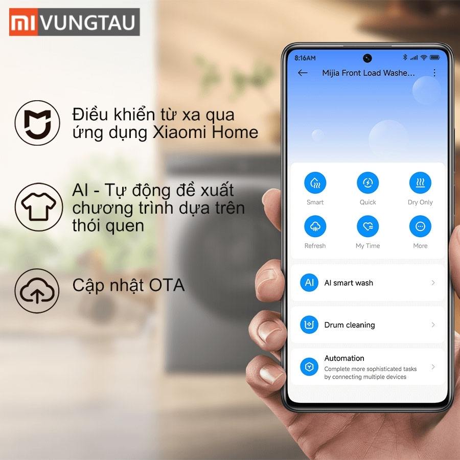 Bên cạnh đó, một điểm nổi bật trên máy giặt sấy cửa trước Xiaomi Mijia chính là tính năng AI Smart Wash, sử dụng trí tuệ nhân tạo học hỏi thói quen sử dụng máy giặt của từng gia đình. Qua thời gian, máy sẽ tự động đề xuất và tối ưu chu trình giặt, mang lại sự thuận tiện tối đa mà không cần điều chỉnh thủ công.