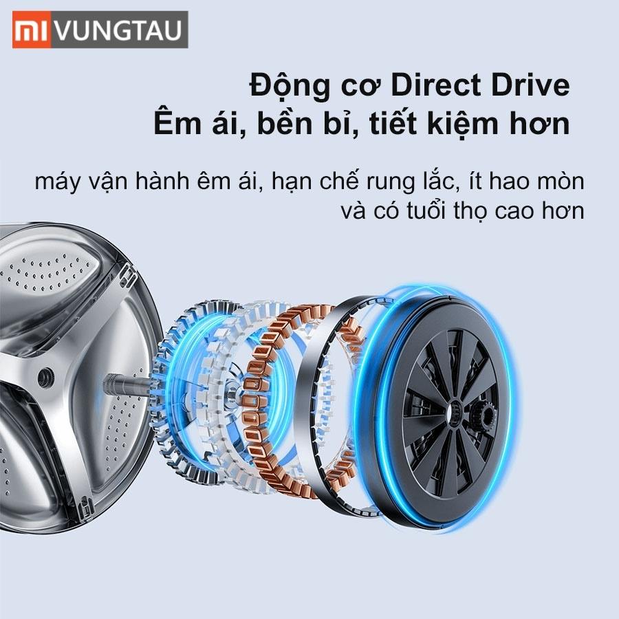Thiết bị sử dụng động cơ Direct Drive, kết nối trực tiếp với lồng giặt mà không cần dây curoa. Nhờ đó, máy vận hành êm ái, hạn chế rung lắc, ít hao mòn và có tuổi thọ cao hơn. Đồng thời, động cơ này cho phép kiểm soát chính xác chu trình giặt, vừa nhẹ nhàng với sợi vải, vừa tiết kiệm điện năng và nước.