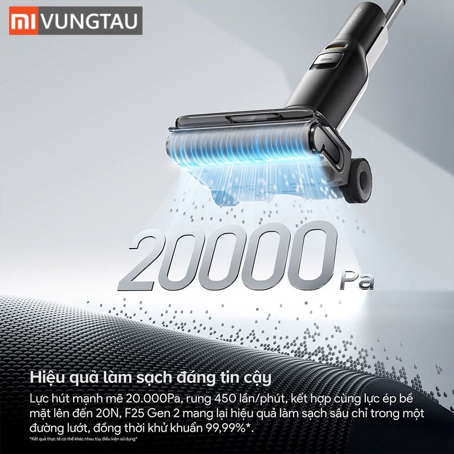 - Lực hút cực mạnh 20.000Pa: Xử lý gọn gàng mọi loại vết bẩn cứng đầu chỉ trong một lần lướt.
