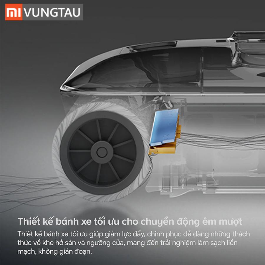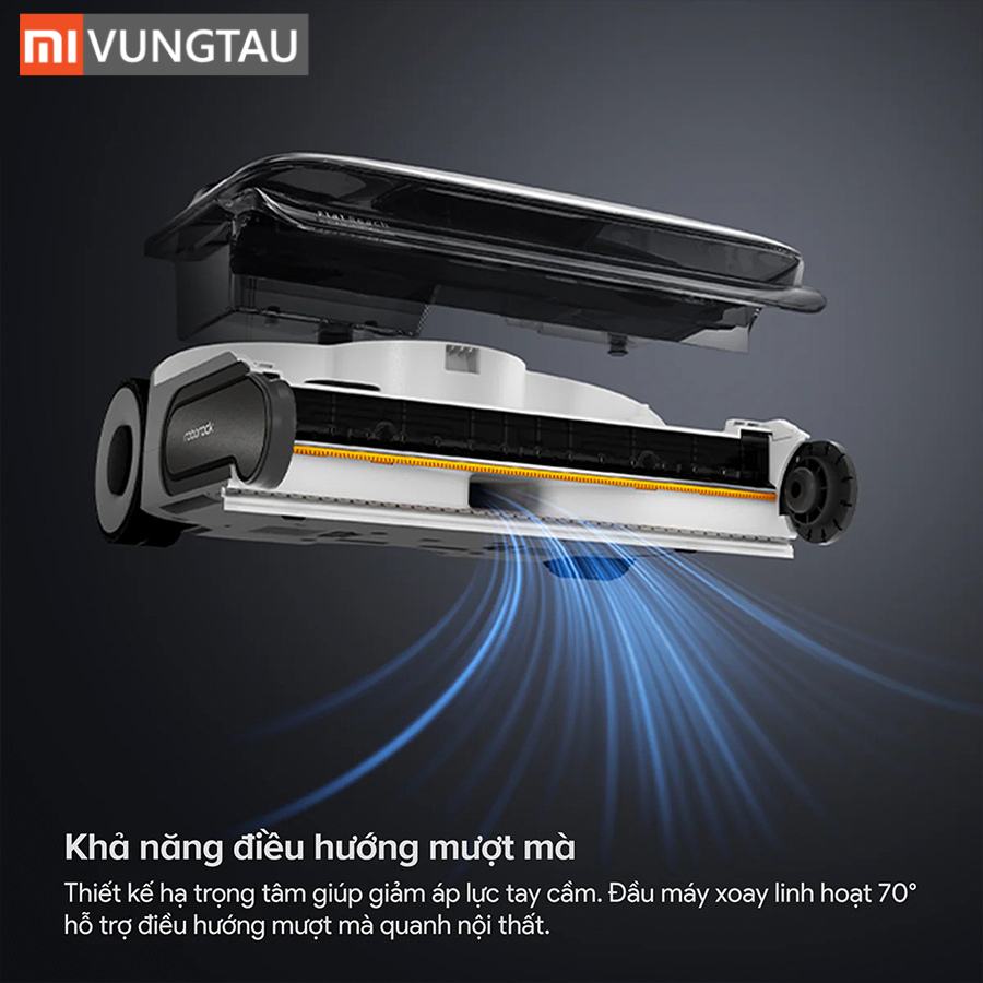 - Bánh xe trợ lực & Đầu cọ xoay 70°: Thao tác đẩy lướt nhẹ tênh, điều hướng linh hoạt quanh đồ đạc.