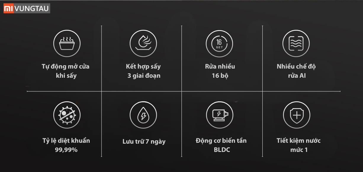 Xiaomi Mijia N1 16 bộ còn được trang bị hệ thống sấy khô nhanh ba lần, khí nóng PTC, mở cửa tự động, sấy khô ba lần ngưng tụ nhiệt độ dư, bát đĩa được làm khô nhanh hơn.