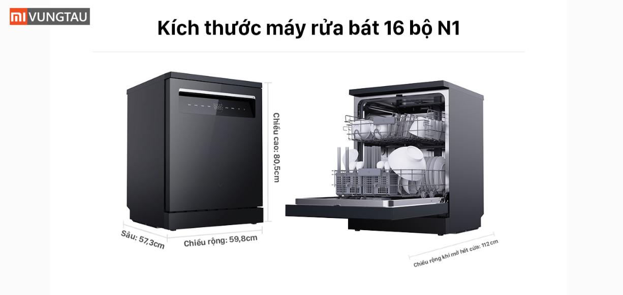 Kích thước máy rửa bát Xiaomi N1 16 bộ: