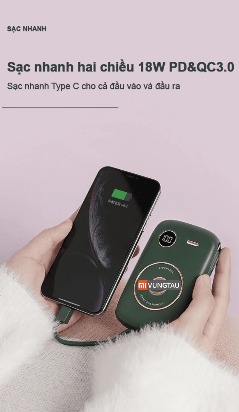 Pin Dự Phòng Sạc Nhanh 22.5w Xiaomi Liberfeel 10.000mAh T45 , Liền Cáp Sạc 3 Đầu
