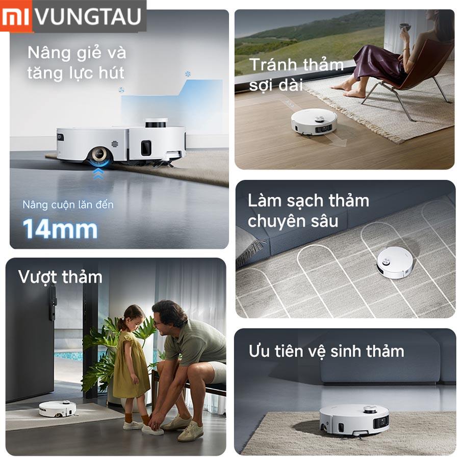 Robot hút bụi lau nhà Dreame Aqua10 Roller được trang bị hệ thống làm sạch thảm nâng cao, cho phép tùy chỉnh chi tiết trên ứng dụng để robot nhận diện toàn bộ khu vực trải thảm trong nhà. Khi di chuyển vào khu vực thảm, robot sẽ tự động nâng con lăn lên 14mm và đồng thời kích hoạt chế độ tăng lực hút mạnh mẽ. Nhờ vậy, bụi bẩn được xử lý tận gốc mà vẫn đảm bảo an toàn cho sợi thảm, không để lại tình trạng ẩm ướt.