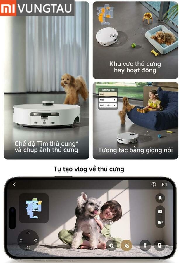 - Tùy chỉnh khu vực thú cưng: Robot tự động nhận diện đồ dùng quanh thú cưng, sau đó tránh hoặc làm sạch khu vực lân cận.