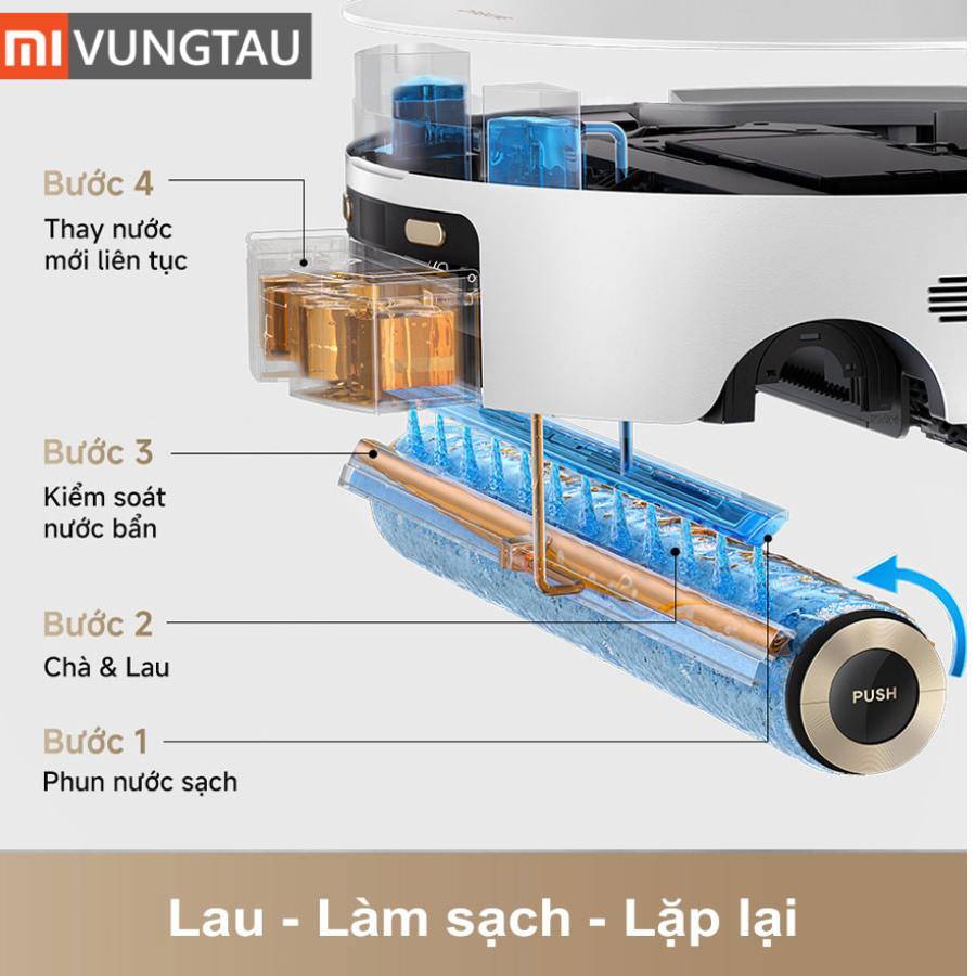 - Tự động cấp nước: Hệ thống bơm nước tự động bổ sung cho bể chứa trong robot, giúp người dùng không phải lo tiếp nước thủ công.