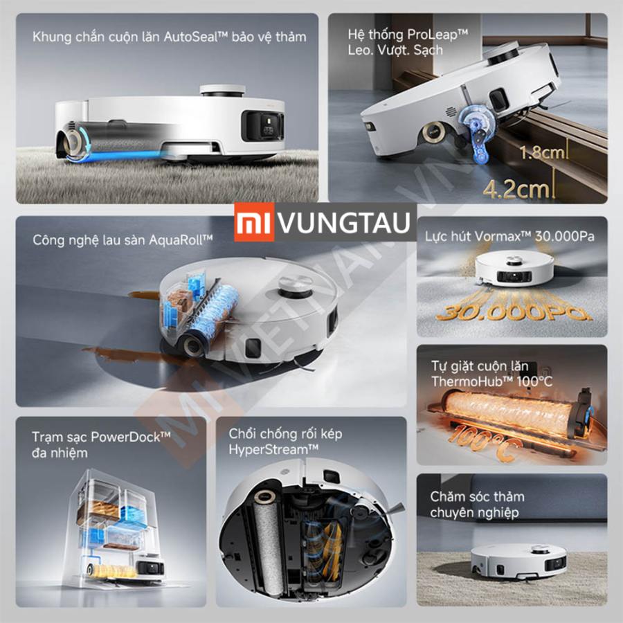 Robot hút bụi lau nhà Dreame Aqua10 Roller là bước tiến mới trong việc mang lại trải nghiệm dọn dẹp toàn diện tại gia. Sở hữu hệ thống lau sàn độc quyền AquaRoll™ kết hợp công nghệ lau nước nóng 100℃, robot có thể dễ dàng xử lý các vết bẩn cứng đầu và giữ cho con lăn luôn sạch sẽ. Ngoài ra, Aqua10 Roller còn tích hợp nhiều công nghệ hiện đại như khả năng vượt chướng ngại, tránh vật cản 3D bằng đèn LED, lực hút Vormax™ mạnh mẽ 30.000Pa, cùng các tính năng tự giặt – sấy – làm khô con lăn, tự bổ sung nước và tự đổ rác, giúp bạn rảnh tay đến 100 ngày. Dreame Aqua10 Roller mang lại giải pháp vệ sinh thông minh, linh hoạt và thân thiện cho mọi gia đình.