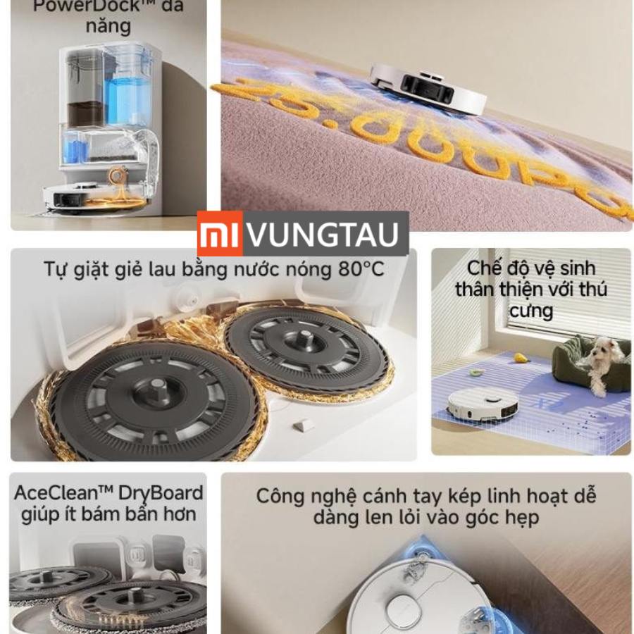 Với khả năng tự đổ bụi lên đến 100 ngày, tự châm và xả nước, cũng như tự thêm dung dịch lau sàn, PowerDock™ trở thành trợ lý dọn dẹp thực thụ giúp robot luôn sạch sẽ, sẵn sàng hoạt động bất cứ khi nào bạn cần. Đặc biệt, hệ thống AceClean™ DryBoard tích hợp với thiết kế phẳng mịn giúp hạn chế tối đa bám bẩn, dễ dàng tự làm sạch mà không cần can thiệp thủ công.