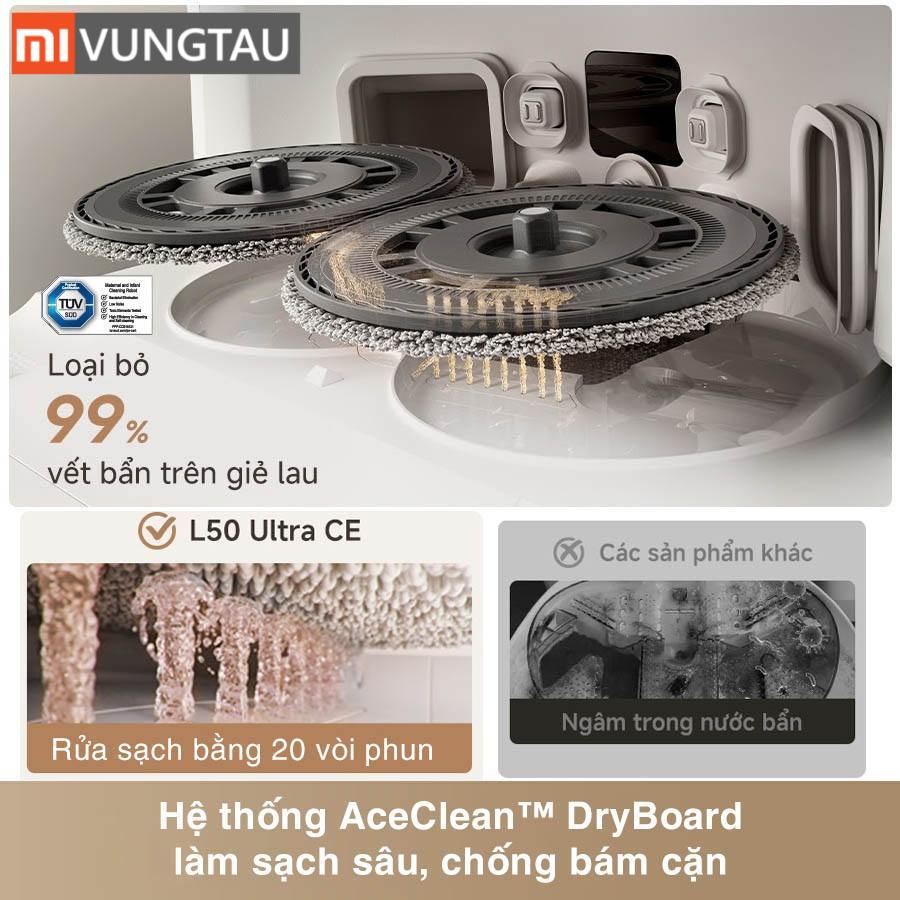 Khác biệt hoàn toàn so với các trạm giặt truyền thống, hệ thống AceClean™ DryBoard của Dreame L50 Ultra CE được thiết kế với bề mặt phẳng chống bám cặn, cho phép quá trình rửa giẻ và xả nước bẩn diễn ra khép kín. Nhờ vậy, dock luôn sạch bóng, không đọng nước, không mùi, giảm đáng kể công việc vệ sinh thủ công của người dùng. Đây chính là bí quyết giúp robot luôn vận hành ổn định, bền bỉ và giữ hiệu quả làm sạch tối ưu qua thời gian.