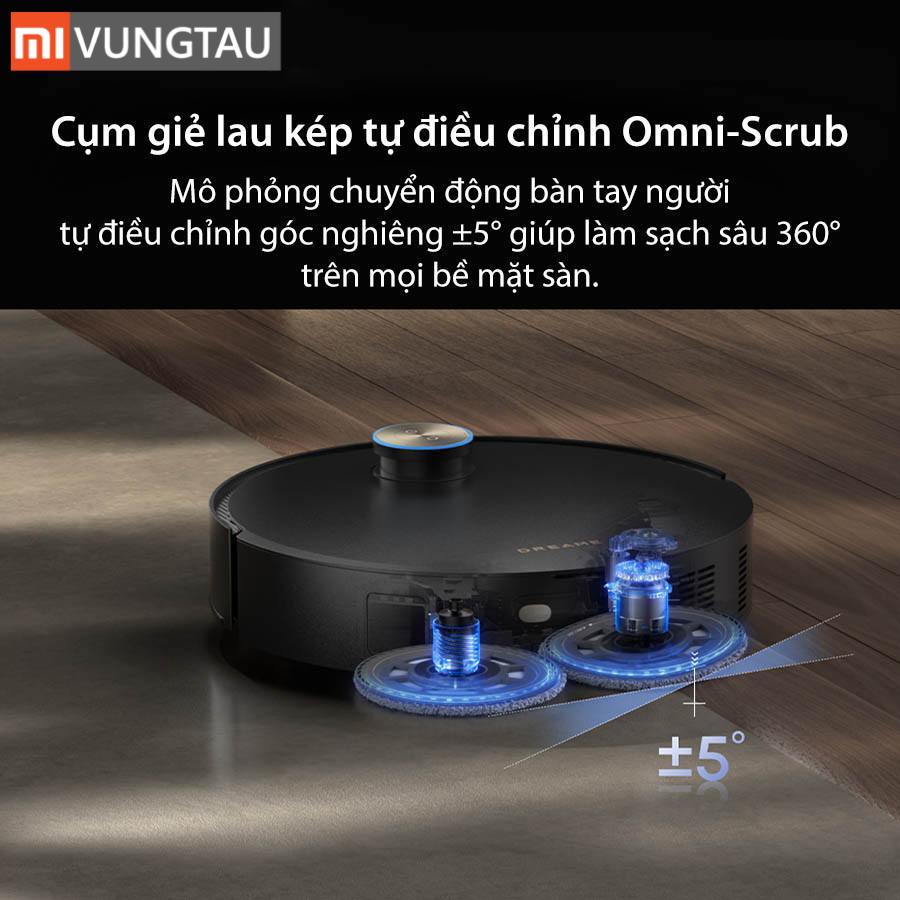 Robot hút bụi lau nhà Dreame X50 Pro Ultra được trang bị cụm giẻ lau kép tự điều chỉnh Omni-Scrub. Với thiết kế hoàn toàn mới mô phỏng chuyển động linh hoạt như bàn tay con người. Giẻ lau có góc nghiêng ±5° tự động, đảm bảo tiếp xúc đều với sàn dù ở bề mặt gồ ghề hay khe nhỏ, mang lại khả năng làm sạch sâu 360° toàn hướng mà không cần can thiệp thủ công.