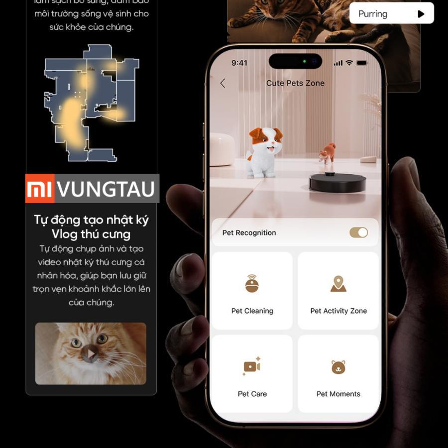Với Dreame X50 Pro Ultra, việc nuôi thú cưng trở nên dễ dàng hơn bao giờ hết. Công nghệ Pet Care 4.0 thông minh giúp robot phát hiện và theo dõi các khu vực thú cưng thường lui tới, tự động thiết lập Pet Activity Hotspots để tăng cường làm sạch tại những vị trí này. Robot còn có khả năng tự động ghi lại hình ảnh và tạo video nhật ký (pet vlog) ghi lại khoảnh khắc đáng yêu của thú cưng, giúp bạn dễ dàng lưu giữ và chia sẻ những kỷ niệm đặc biệt. Ngoài ra, tính năng Pet-Finding Mode cho phép robot tìm kiếm và chụp ảnh thú cưng ngay trong nhà thông qua ứng dụng.