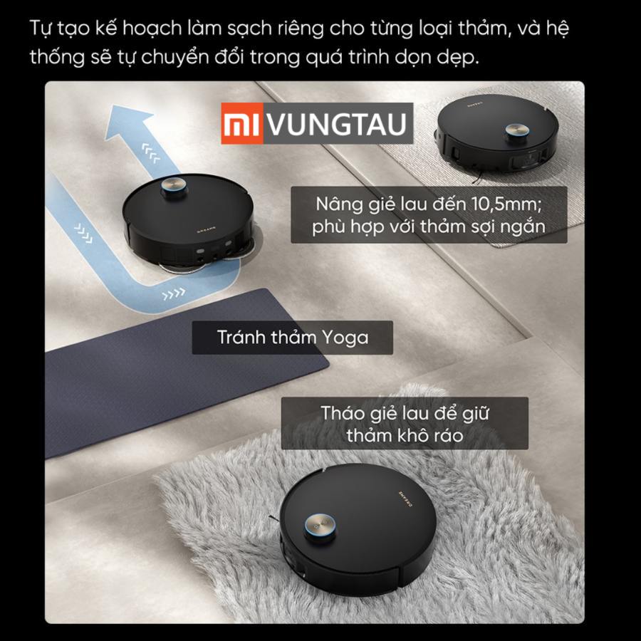 Để phù hợp với mọi loại thảm, Dreame X50 Pro Ultra hỗ trợ tùy chỉnh kế hoạch làm sạch riêng biệt cho từng chất liệu. Robot có thể tự động nâng giẻ lau lên đến 10.5 mm khi phát hiện thảm thấp, hoặc hoàn toàn gỡ bỏ giẻ lau khi cần để giữ thảm luôn khô ráo. Ngoài ra, robot còn tự động tránh thảm yoga và các bề mặt mềm, giúp bảo vệ chất liệu và duy trì hiệu quả làm sạch ổn định, không để lại ẩm ướt hoặc vết nước.