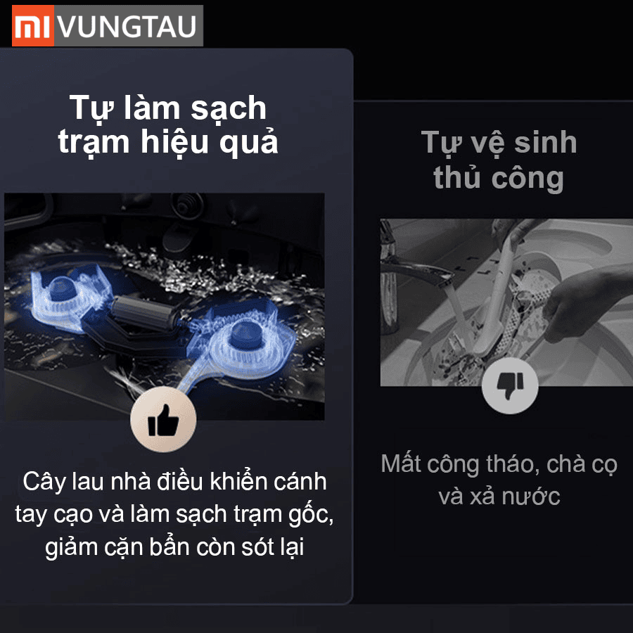- Tự động tháo rời cây lau nhà và nâng lực hút để làm sạch thảm tối ưu.