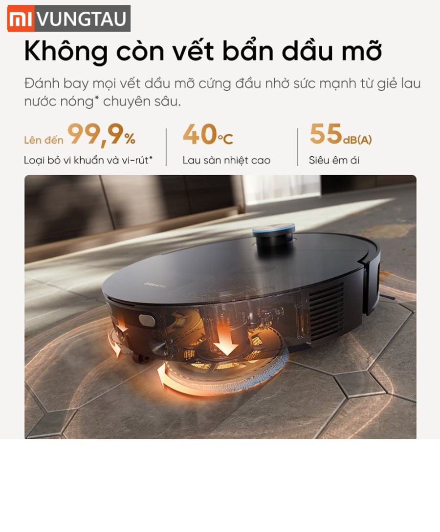 - Hệ thống DreameGlide™ lau nước nóng 40°C, đánh bay vết bẩn dầu mỡ