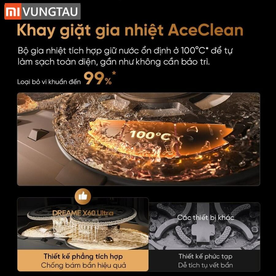 Công nghệ ThermoHub™ đưa khả năng vệ sinh của Dreame X60 Ultra lên một tầm cao mới khi tự động giặt miếng lau bằng nước nóng tới 100°C, giúp loại bỏ hoàn toàn dầu mỡ, bụi bẩn và vi khuẩn còn sót lại sau mỗi lần làm việc.