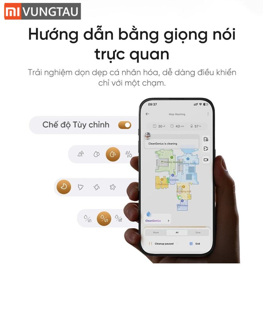 Ứng dụng cung cấp giao diện trực quan, cho phép người dùng xem bản đồ 3D chi tiết của ngôi nhà, tùy chỉnh khu vực làm sạch hoặc đặt vùng cấm chỉ bằng vài thao tác chạm. Với khả năng kết nối ổn định và đồng bộ dữ liệu theo thời gian thực, Dreame X60 Ultra mang đến trải nghiệm quản lý thông minh, tiện lợi, đúng chuẩn một thiết bị cao cấp cho ngôi nhà hiện đại.
