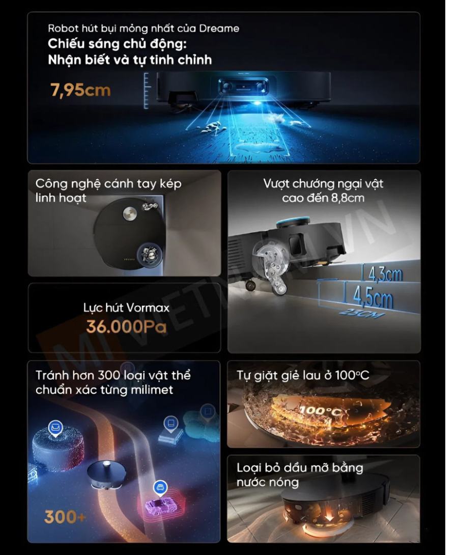 | Công nghệ tránh vật cản | AI Camera kép + Đèn LED + Cảm biến ánh sáng 3D Lateral |