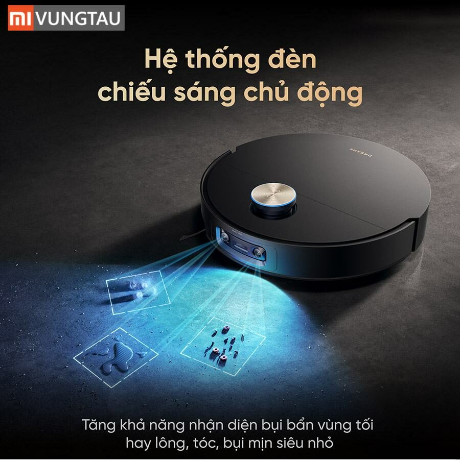 Khi robot phát hiện vết bẩn, đèn xanh lam sẽ sáng báo hiệu và kích hoạt chế độ làm sạch phù hợp. Công nghệ này giúp xác định chính xác loại vết bẩn, từ đó tự động chuyển chế độ lau hoặc hút, tránh làm loang bẩn hoặc sàn quá ướt.
