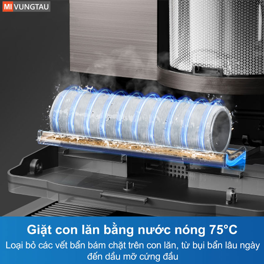 Giặt con lăn bằng nước nóng 75°C giúp loại bỏ vết bẩn cứng đầu