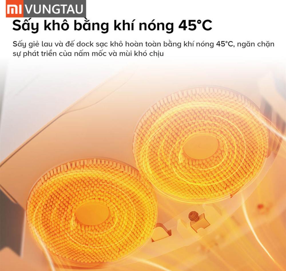 Không chỉ vậy, dock còn có khả năng tự giặt khăn lau bằng nước nóng 75°C với quy trình mô phỏng hoạt động của máy giặt: giặt sơ, xả và vắt khô tốc độ cao. Khăn lau sau đó sẽ được sấy khô bằng khí ấm 45°C, giúp khử mùi, diệt khuẩn và ngăn ngừa ẩm mốc hiệu quả. Tất cả được thực hiện hoàn toàn tự động, giữ cho robot luôn trong tình trạng sạch sẽ, sẵn sàng làm việc bất cứ lúc nào.