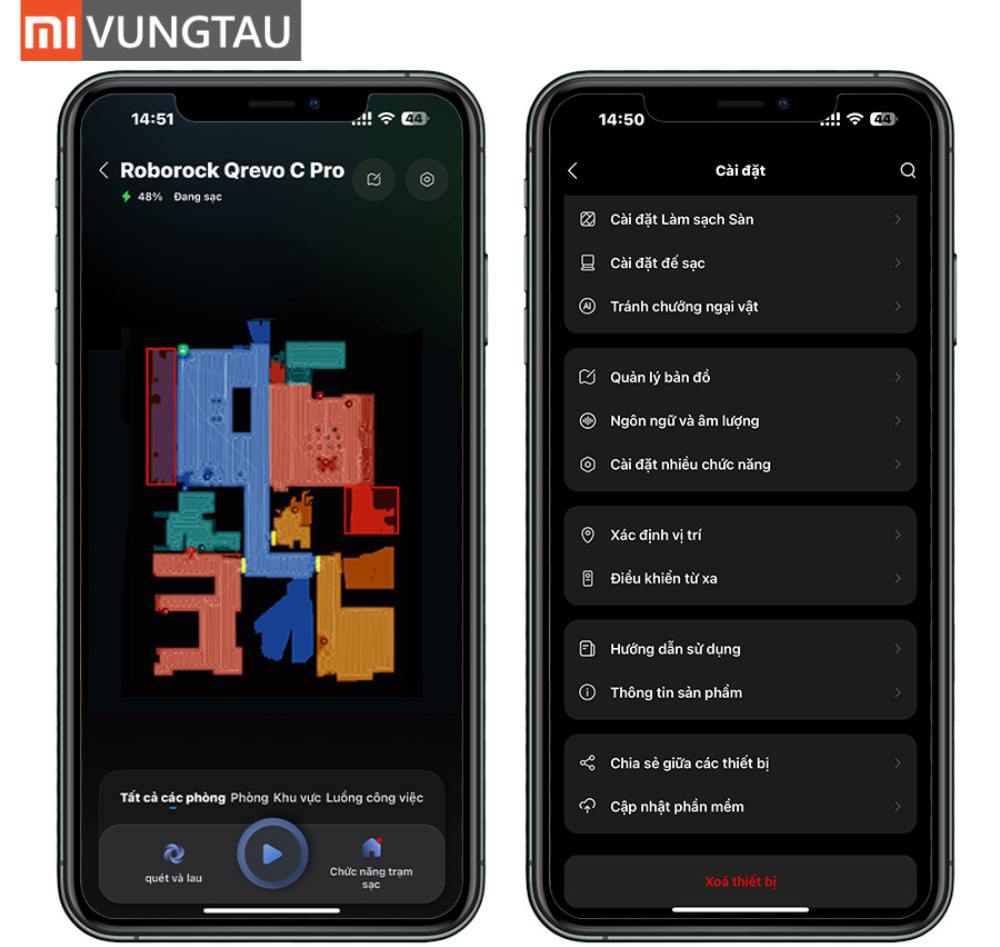 Chỉ cần kết nối Qrevo C Pro với ứng dụng Roborock, bạn có thể theo dõi, điều chỉnh lực hút, độ ẩm, lên lịch dọn dẹp, và chọn khu vực vệ sinh cụ thể. Công nghệ AI SmartPlan giúp phân tích bố cục căn nhà và đề xuất trình tự làm sạch tối ưu để tiết kiệm thời gian, năng lượng mà vẫn đảm bảo hiệu quả.