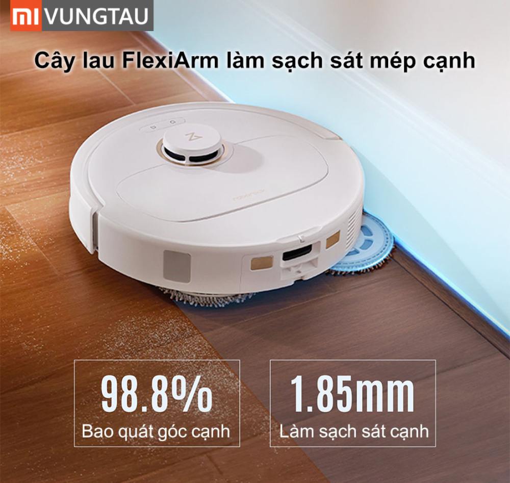 Roborock Qrevo C Pro thiết kế cây lau thông minh FlexiArm có thể tự động mở rộng khi robot phát hiện các cạnh tường, góc khuất hay khu vực quanh chân đồ nội thất. Nhờ đó, những vị trí khó tiếp cận thường bị bỏ sót sẽ được làm sạch kỹ càng, mang lại sự hoàn thiện cho toàn bộ không gian.