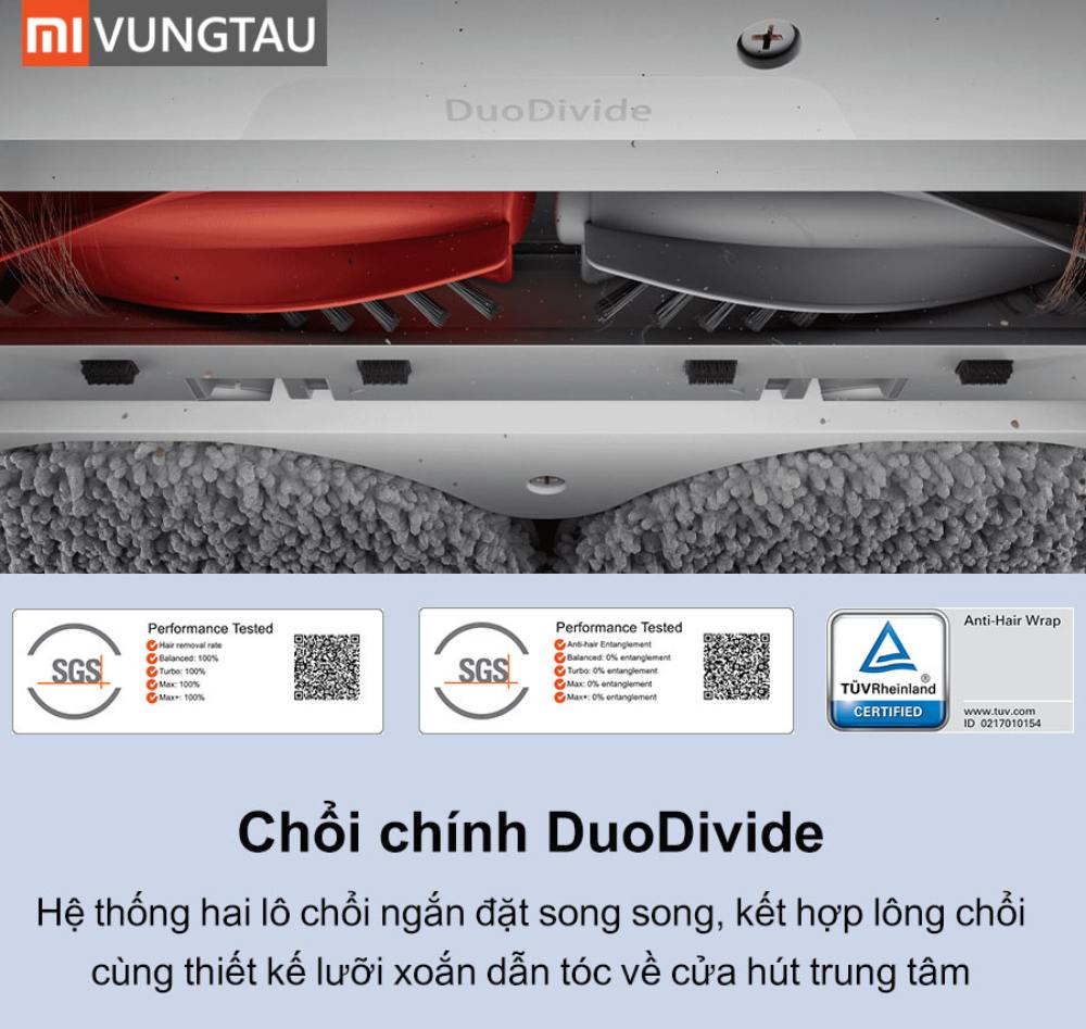 - Chổi chính DuoDivide giúp gom tóc hiệu quả, chống kẹt, chống nghẽn