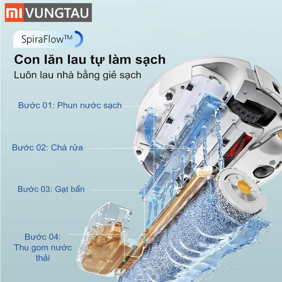 Robot hút bụi lau nhà Roborock Qrevo Curv 2 Flow được trang bị công nghệ SpiraFlow™ với quy trình làm sạch bốn bước khép kín, giúp khăn lau luôn sạch mới trong từng lần vận hành: