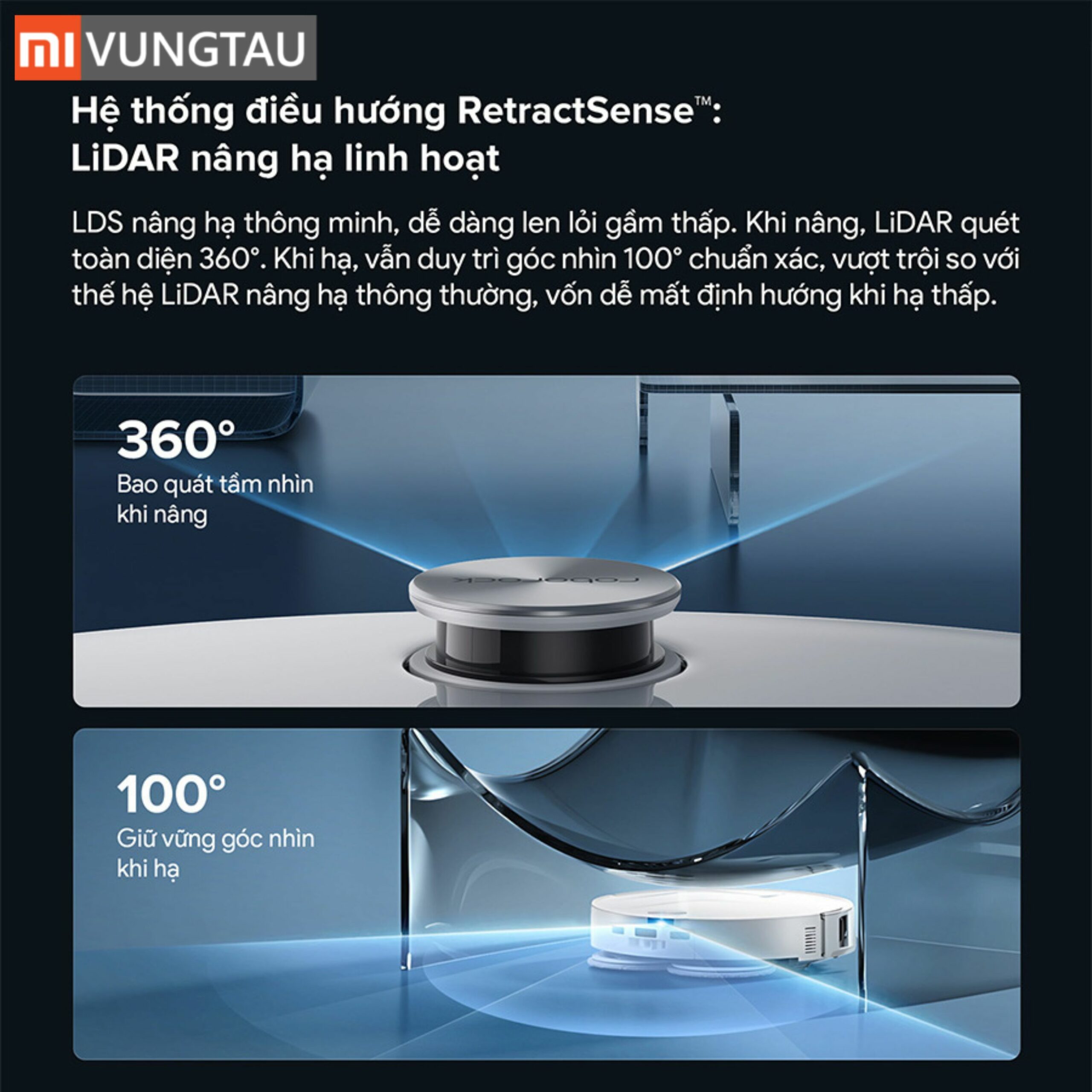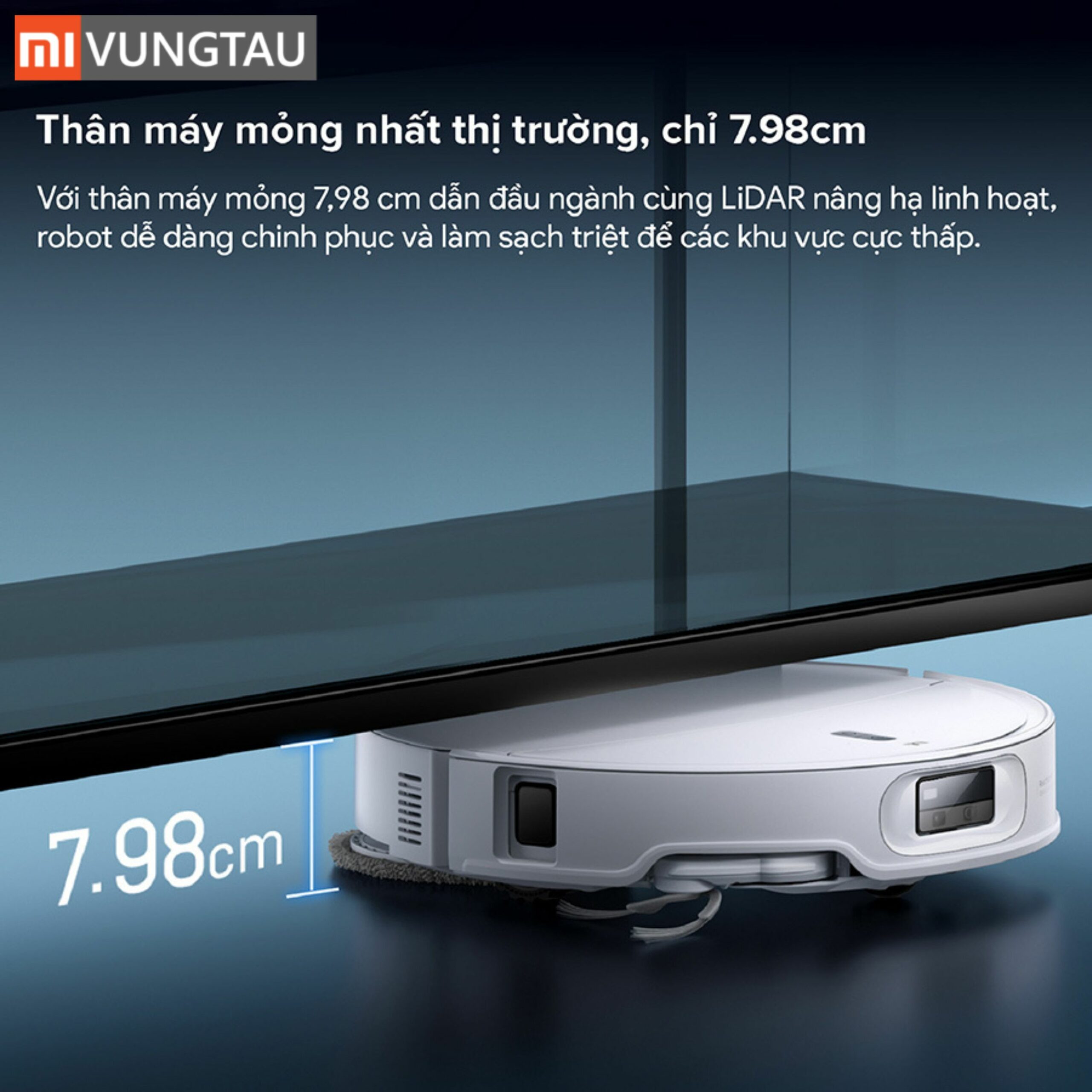 - Thiết kế siêu mỏng 7.98cm: Trang bị hệ thống điều hướng LDS tự nâng hạ (RetractSense), dễ dàng đi sâu vào các khu vực gầm thấp.