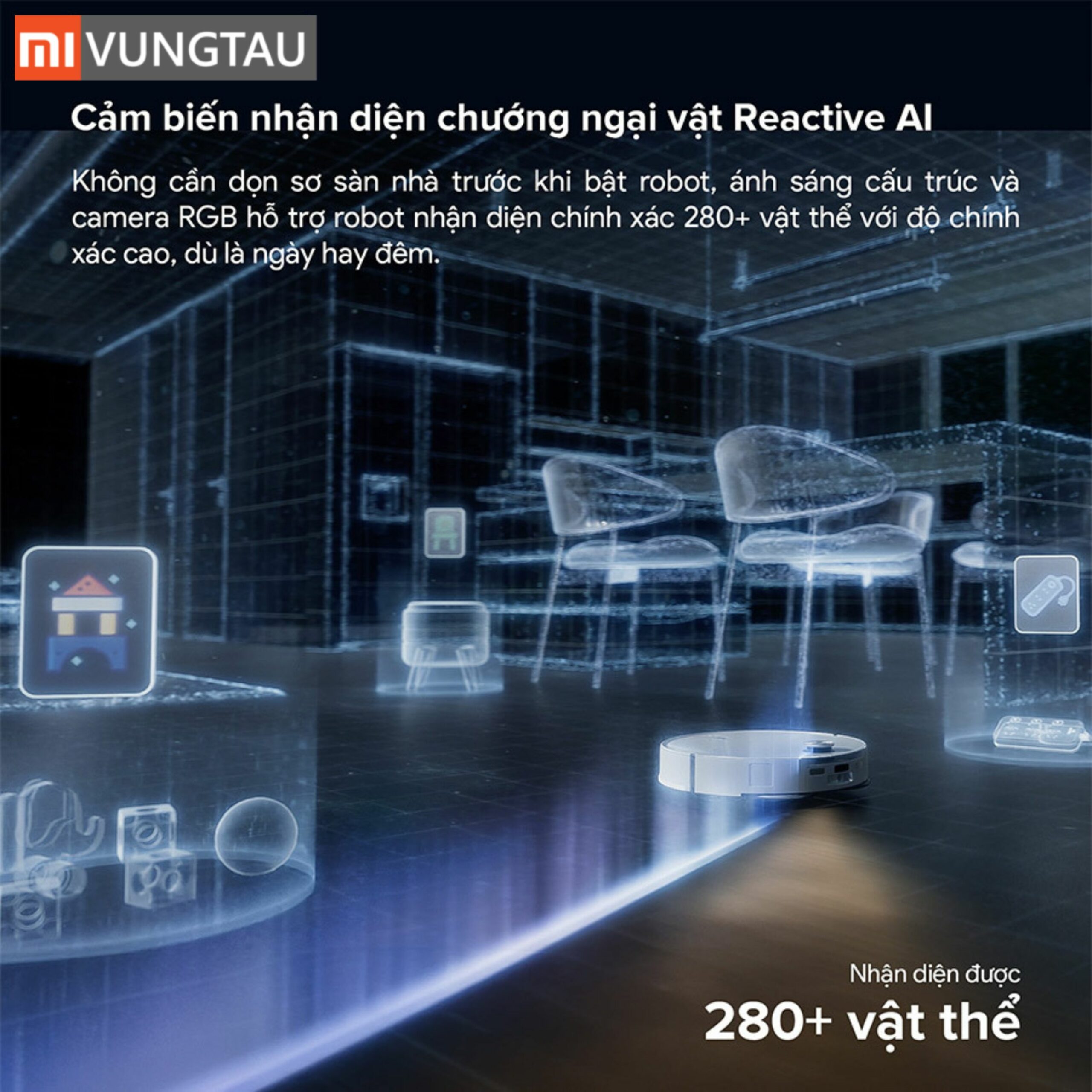 - Nhận diện vật cản Reactive AI: Khả năng nhận diện chính xác hơn 280 loại đồ vật phổ biến trên sàn nhà.