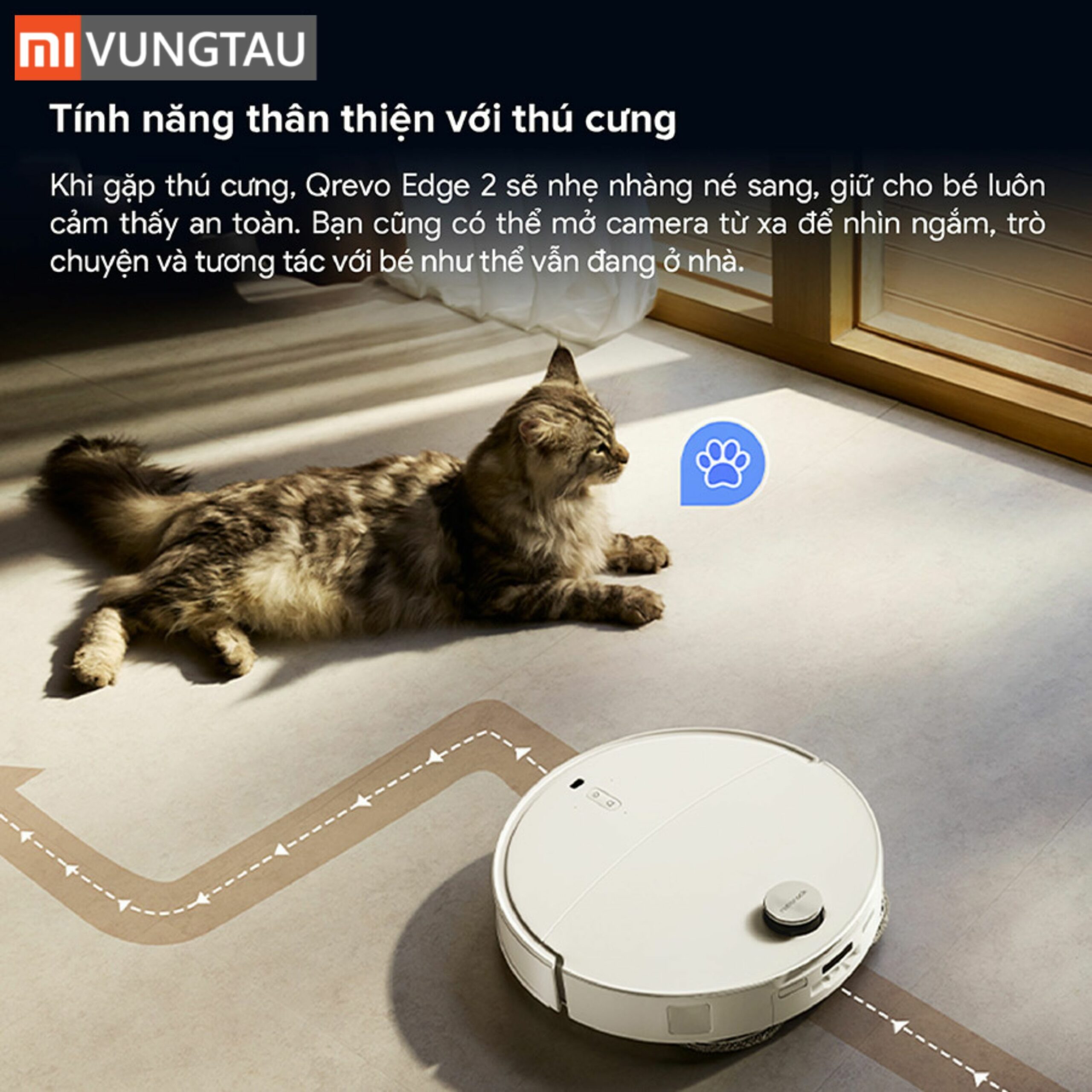 Nhờ khả năng vượt vật cản lên đến 2cm, robot Roborock Qrevo Edge 2 có thể dễ dàng di chuyển qua các gờ cửa hoặc bậc nhỏ giữa các phòng. Điều này giúp quá trình làm sạch diễn ra liên tục, không bị gián đoạn bởi các chướng ngại vật phổ biến trong nhà. Bên cạnh đó, tính năng thân thiện với thú cưng giúp né tránh thú