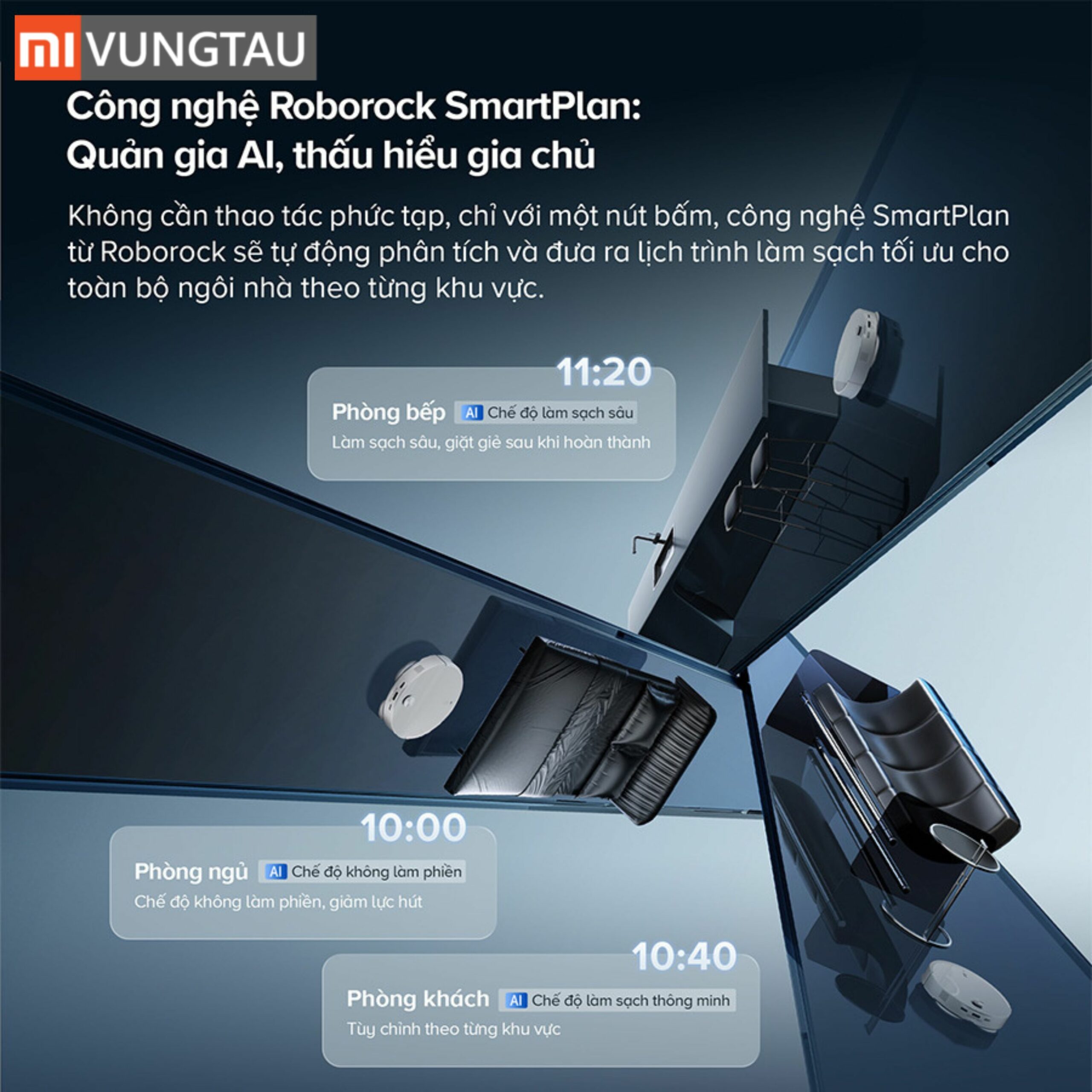 Ngoài ra, người dùng còn có thể theo dõi trạng thái hoạt động theo thời gian thực, kiểm tra lịch sử làm sạch và nhận thông báo bảo trì. Đây là công cụ quan trọng giúp tối ưu trải nghiệm sử dụng, mang lại sự chủ động và tiện lợi trong việc quản lý thiết bị từ xa. Thêm nữa, với công nghệ Roborock Smart Plan, robot còn tự động phân tích và đưa ra lịch trình làm sạch tối ưu cho toàn bộ ngôi nhà theo từng khu vực riêng biệt.