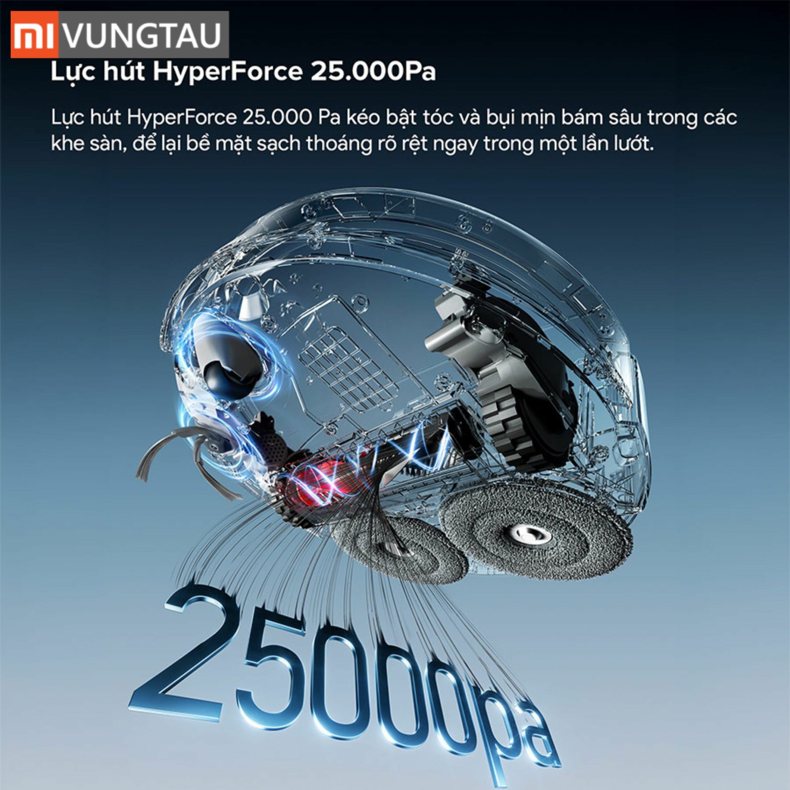 Lực hút siêu mạnh 25.000Pa làm sạch sâu mọi bề mặt