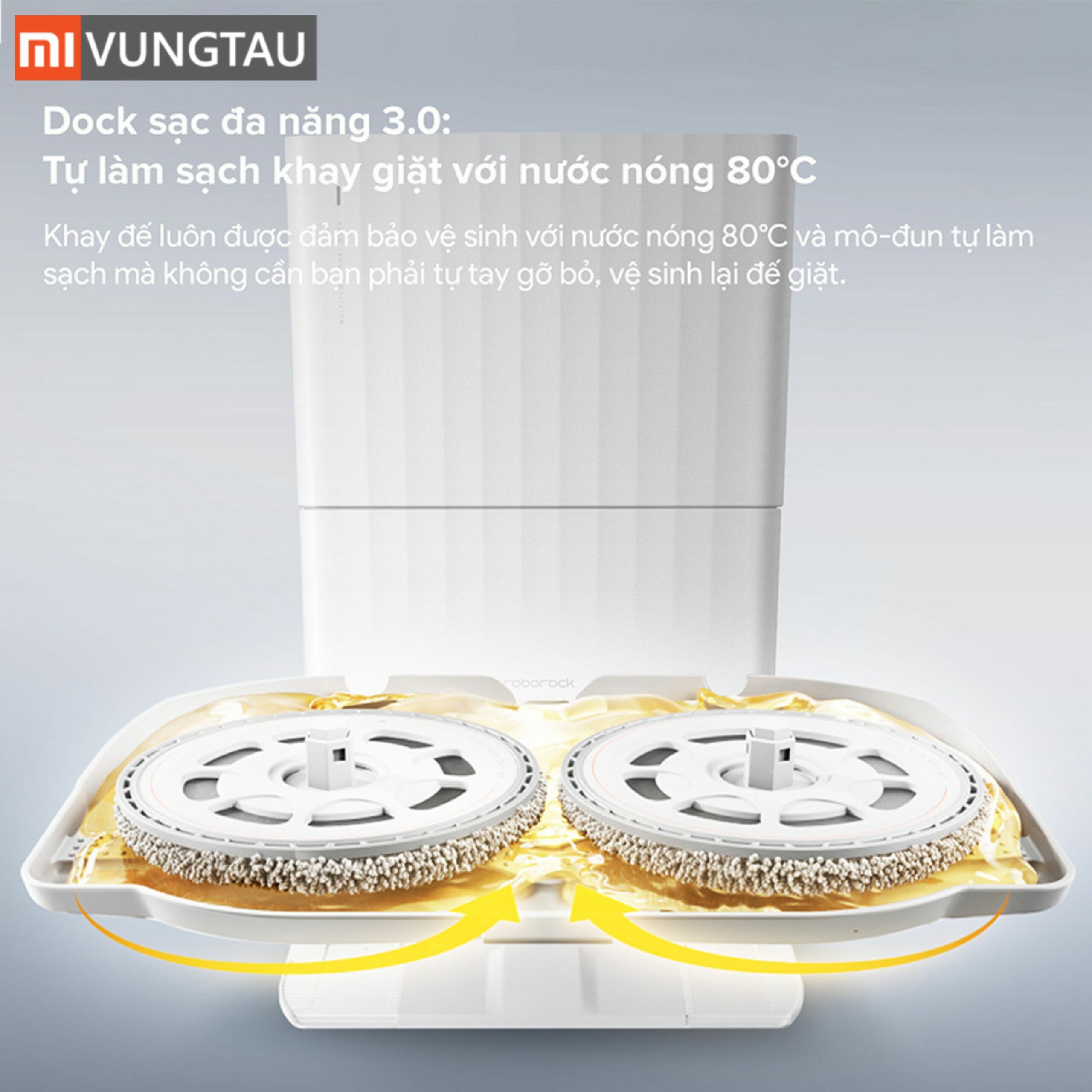 Không dừng lại ở việc giặt giẻ thông thường, trạm sạc còn tích hợp chế độ ngâm chuyên sâu giúp làm mềm và đánh bay các vết bẩn khó xử lý. Đồng thời, khay giặt cũng được làm sạch bằng nước nóng 80°C, ngăn ngừa cặn bẩn tích tụ và hạn chế sự phát triển của vi khuẩn. Nhờ đó, toàn bộ hệ thống luôn duy trì trạng thái sạch sẽ, giảm thiểu công việc vệ sinh thủ công cho người dùng.