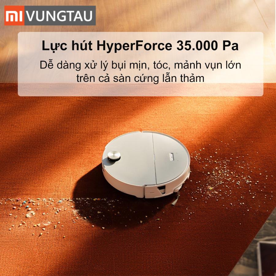 - Lực hút HyperForce 35.000 Pa xử lý bụi mịn, tóc và rác lớn hiệu quả