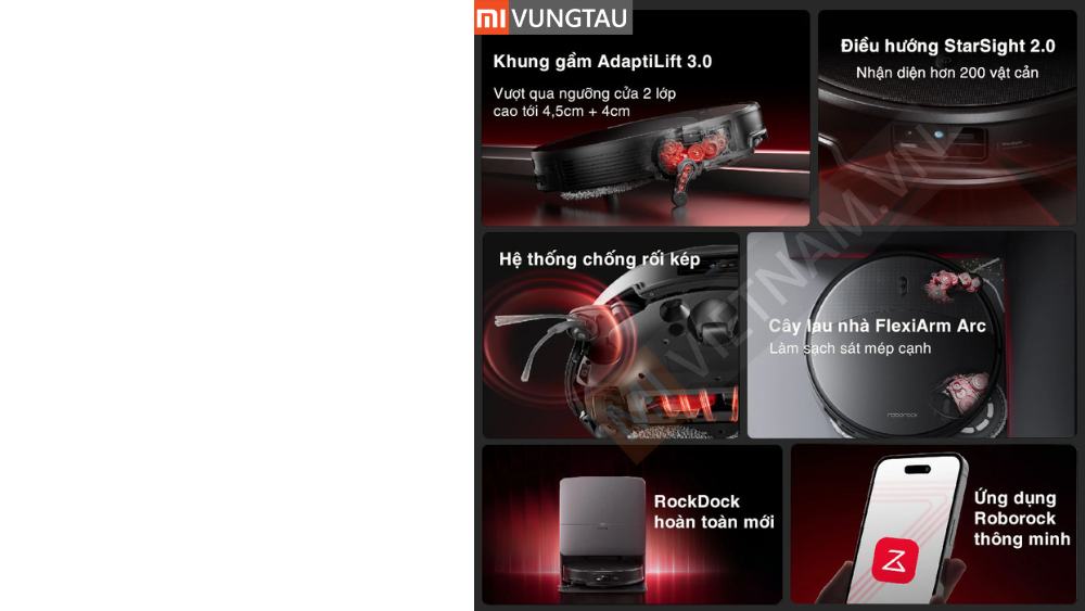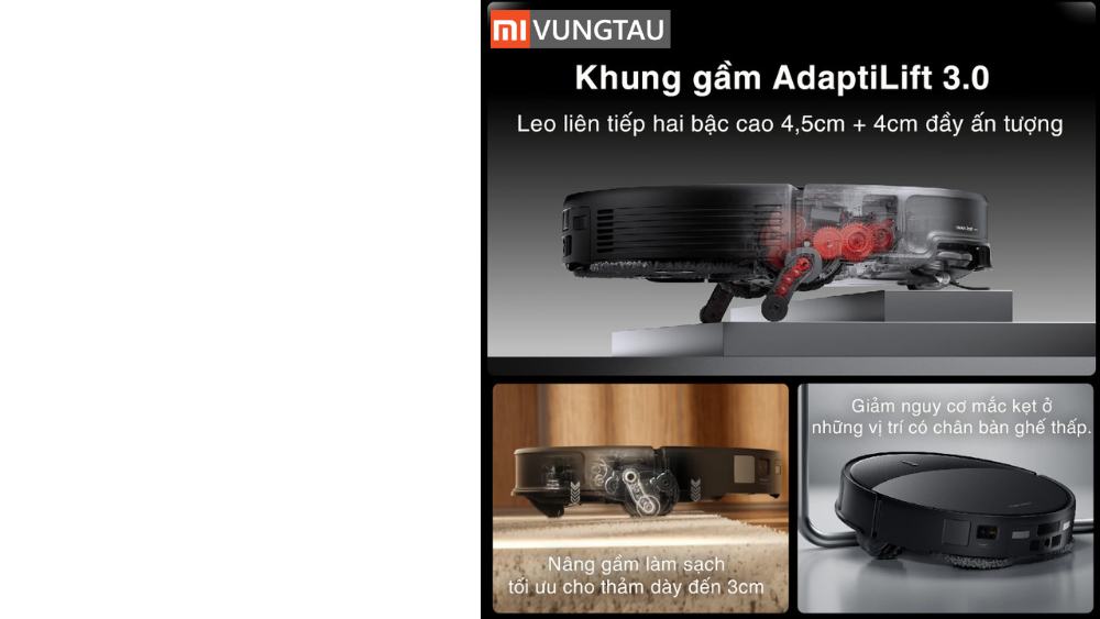 - Khung gầm AdaptiLift 3.0 vượt ngưỡng cao đến 8,5 cm, tối ưu nhà nhiều bậc