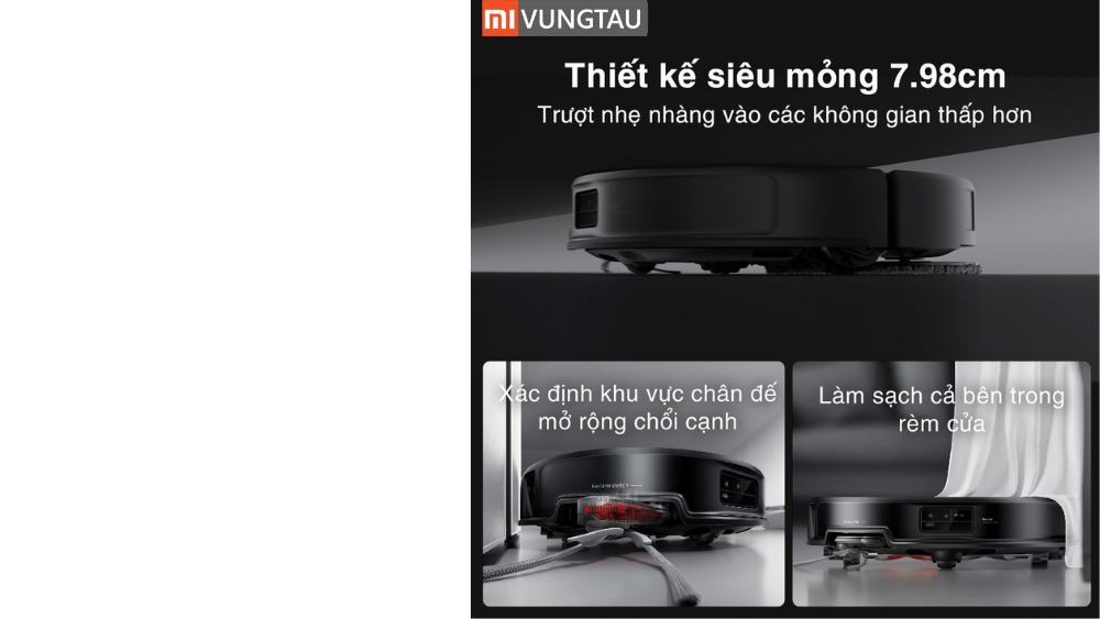 - Thân máy siêu mỏng 7.98 cm, dễ dàng làm sạch gầm thấp