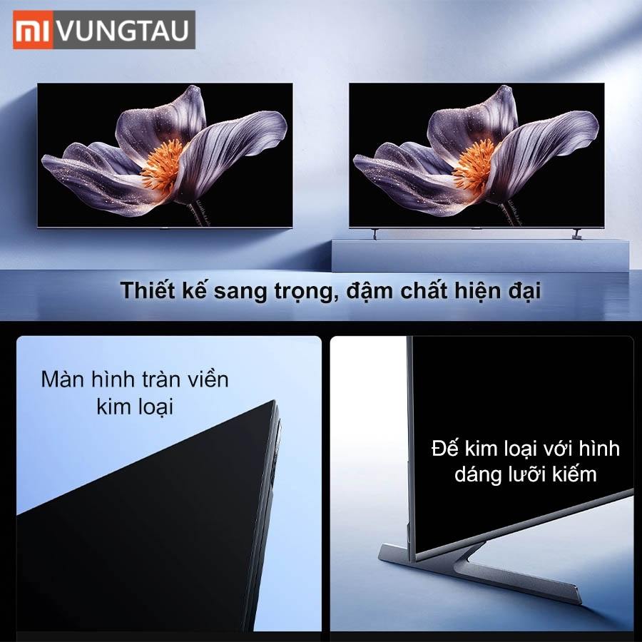 Bên cạnh phần hiển thị ấn tượng, Tivi Xiaomi 65 Inch S Pro Mini LED còn được hoàn thiện với chất liệu kim loại cao cấp, tạo sự bền bỉ và sang trọng. Phần chân đế đôi được cách điệu theo hình lưỡi kiếm, vừa chắc chắn, vừa giúp tổng thể thêm hài hòa.