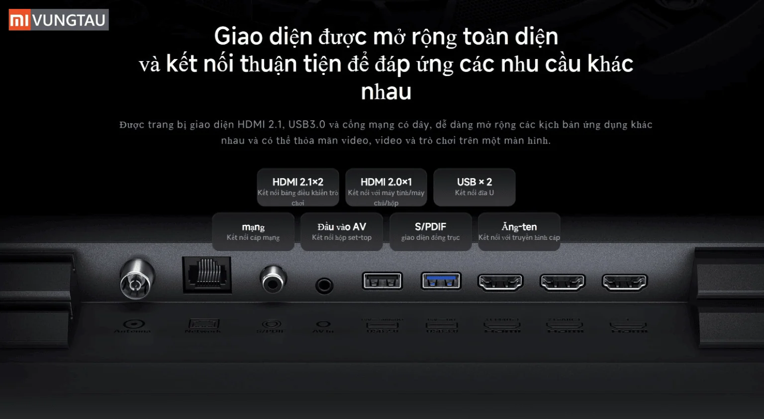 | HDMI | 2 cổng HDMI 4k 2.1+1 eARC, 2 cổng USB |